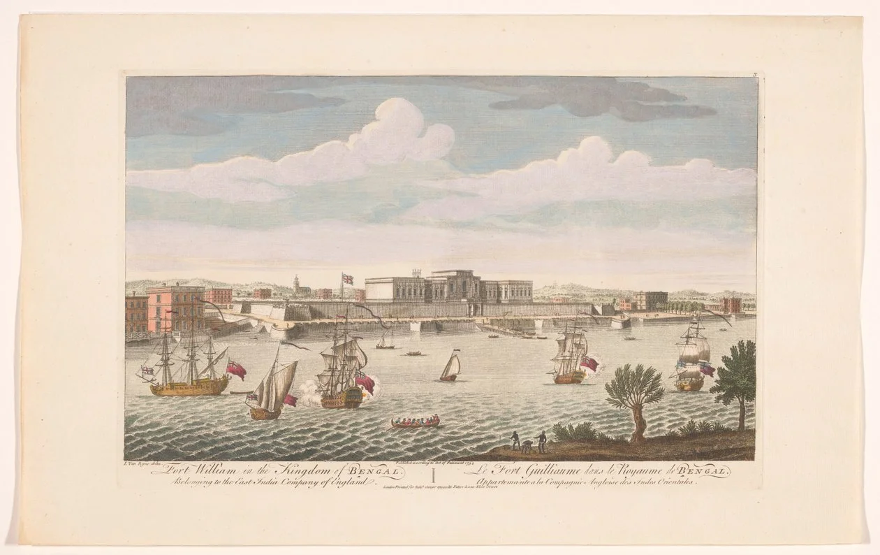 EIC members favoured representing Calcutta from the riverside perspective of Fort William, as its history epitomized loss, reclamation, and fortification during British colonization while also asserting the company’s dominance in maritime trade. The original fort, constructed in 1696 by the EIC, functioned as a central hub for procuring cargo bound for London. However, it was poorly fortified and fell to the forces of the Nawab of Bengal, Siraj-ud-Daulah, during the 1756 Siege of Calcutta (Jasanoff, 2005, p. 28). Following the EIC’s victory at the Battle of Plassey in 1757, Calcutta was reclaimed, and a new fort was constructed further south on the eastern bank of the Hooghly River.