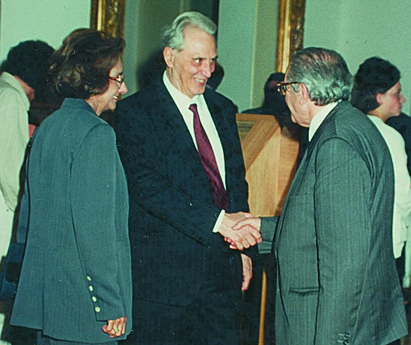 Former MNAO director (1977–78 and 1980–2005) Donatella Mazzeo (right) with Antonio Paolucci, Ministry of Italian Cultural Heritage and now Director of the Vatican Museums