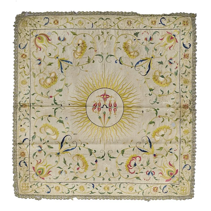 Chinese-produced ornaments for Catholic worship that are still extant in Portugal, such as liturgical vestments and decorations for sacred spaces and processions, are good examples. Most of this type of export textile was intended for various missionary contexts in Asia, under Portuguese (and Spanish) patronage, which required certain ornaments that were necessary for the celebration of the liturgy. But many pieces were channelled to Portugal, mainly through private trade and efficient ecclesiastical networks, which were responsible for their generalized distribution throughout the country by means of orders and gifts. For example, a set in the possession of the Irmandade de Santa Cruz (Holy Cross Brotherhood) in the city of Braga (Fig. 1) was sent at its request, in the 1630s, by an influential and powerful merchant from Macao, a native of the council of Braga, who was responsible for supplying other pieces to various institutions in the region. Another vestment, from the church of Santo Aleixo da Restauração, in the town of Moura, was part of a royal gift from King Pedro II (r. 1683–1706) to the Convent of Tomina, in Alentejo (Fig. 2). In each case, it has been possible to establish a connection to written documents that allow the pieces to be dated and shed light on the means used to obtain them, thus helping to identify characteristics of production in this period.